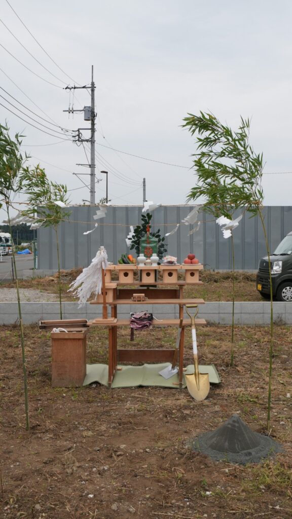 地鎮祭は神主様に祈願していただきますが、上棟式は弊社と施主様だけで行います。